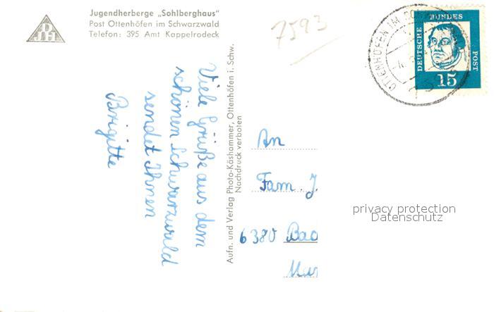 73603381 alte Postkarte Ottenhoefen Schwarzwald Jugendherberge Sohlberghaus postalisch gelaufen Erhaltung siehe scans [KathaD81] KatCode: 11110008317102