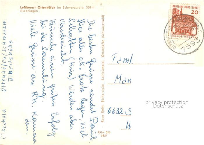73771949 alte Postkarte Ottenhoefen Schwarzwald Kuranlagen postalisch gelaufen Erhaltung siehe scans [WerneD78] KatCode: 11110008317102
