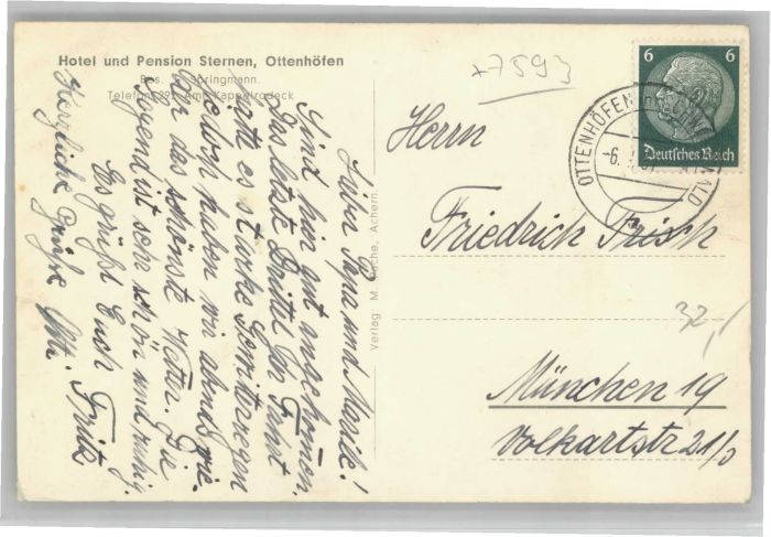 40712281 Ottenhoefen Schwarzwald Ottenhoefen Hotel Pension Sternen postalisch gelaufen Alte Ansichtskarte Postkarte alte Postkarte Katcode 11110008317102