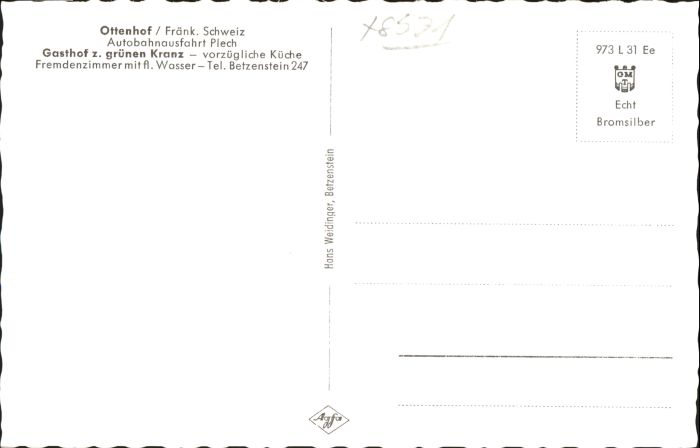 40805446 Ottenhof Plech Ottenhof Autobahnausfahrt Plech Fraenkische Schweiz Gasthof zum gruenen Kranz * postalisch nicht gelaufen Alte Ansichtskarte Postkarte Katcode 11110009472177