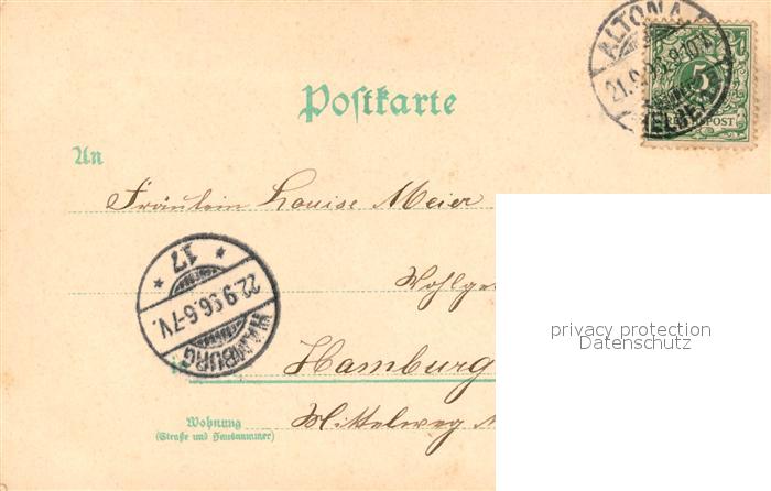 43251498 alte Postkarte Ottensen Hamburg Rathaus Stadttheater Hauptkirche Hafen Segelboote Siegesdenkmal Litho postalisch gelaufen Erhaltung siehe scans [FriedD77] KatCode: 11110002000000