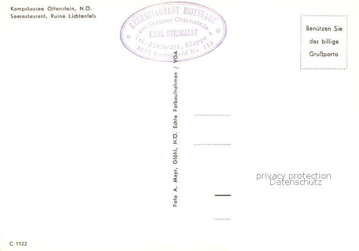 73259196 Ottenstein Rastenfeld Kampstausee Seerestaurant Ruine Lichtenfels postalisch nicht gelaufen Erhaltung siehe scans [NatalD47] KatCode: 11390124031336
