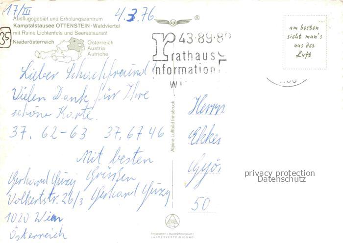 74100545 alte Postkarte Ottenstein Schloss Rastenfeld Niederoesterreich AT Panorama Kamptalstausee postalisch gelaufen Fliegeraufnahme Erhaltung siehe scans [FriedD77] KatCode: 11390124031336