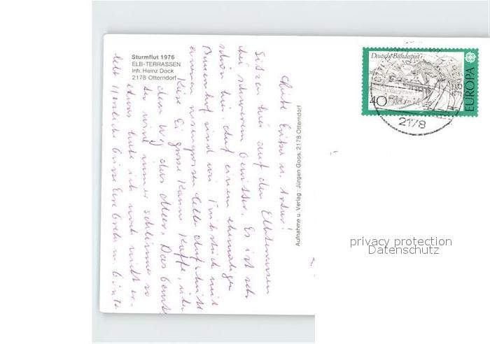 72104886 alte Postkarte Otterndorf Niederelbe Elb-Terrassen unter Wasser Sturmflut 1976 postalisch gelaufen Erhaltung siehe scans KatCode: 11110003352046