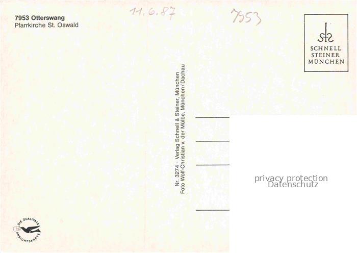 74050790 Otterswang Bad Schussenried Pfarrkirche St Oswald postalisch nicht gelaufen Erhaltung siehe scans [WerneD78] KatCode: 11110008426014