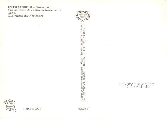 12975178 Ottmarsheim Haut-Rhin Fliegeraufnahme Eglise octogonale KatCode 11170068468253