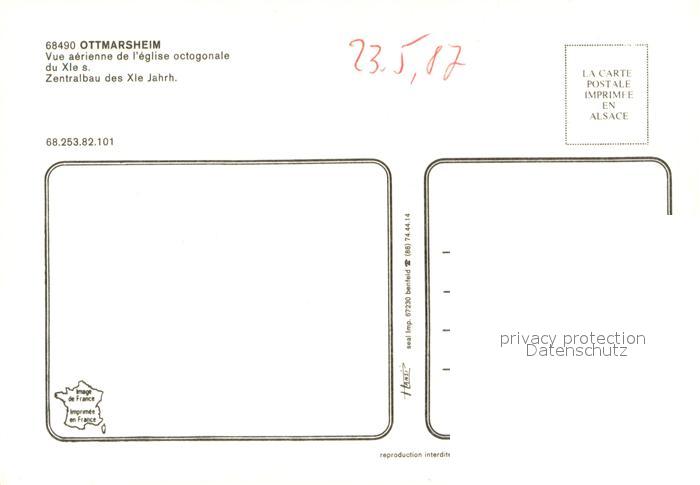 13745342 Ottmarsheim Haut-Rhin Vue aerienne de l’eglise octogonale postalisch gelaufen Erhaltung siehe scans [WerneD78] carte postale Wern Katcode 11170068468253