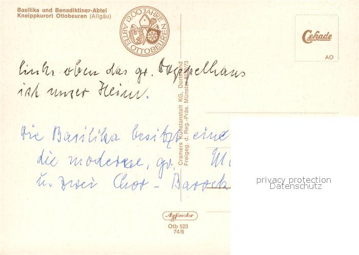 73600118 Ottobeuren Basilika Benediktinerabtei Kneippkurort Fliegeraufnahme postalisch nicht gelaufen Erhaltung siehe scans [FriedD77] KatCode: 11110009778186