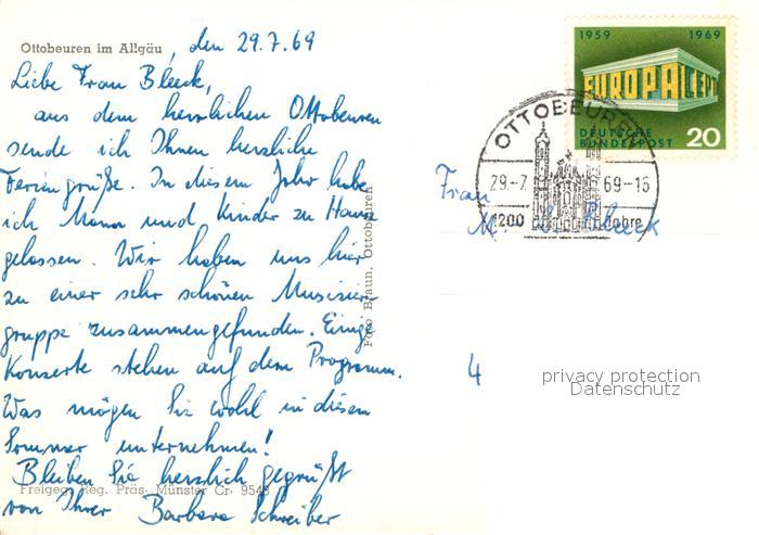 72965580 alte Postkarte Ottobeuren Basilika Fliegeraufnahme postalisch gelaufen Erhaltung siehe scans [FriedD77] KatCode: 11110009778186