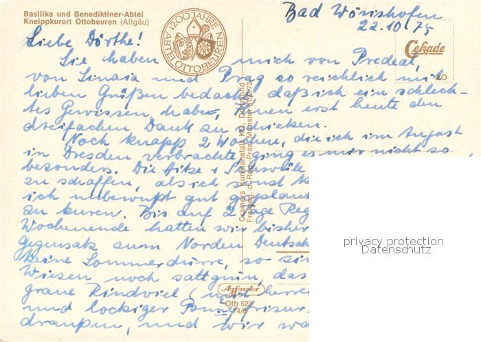 73704604 Ottobeuren Basilika und Benediktiner Abtei Kneippkurort postalisch nicht gelaufen Fliegeraufnahme Erhaltung siehe scans [FriedD77] KatCode: 11110009778186