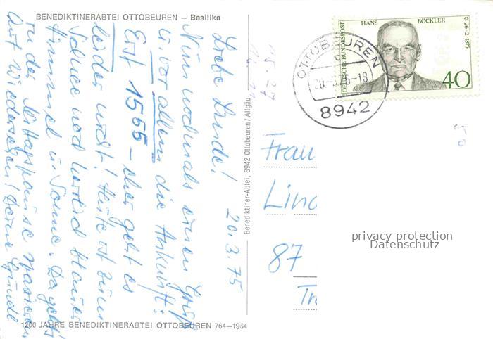 74136635 alte Postkarte Ottobeuren Bayern Benediktinerabtei Ottobeuren Basilika postalisch gelaufen Erhaltung siehe scans [WerneD78] KatCode: 11110009778186