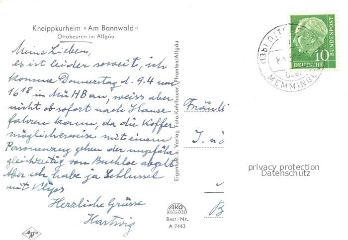 Ottobeuren Bayern Kneippkurheim Am Bannwald postalisch gelaufen Erhaltung siehe scans [WerneD78] alte Postkarte Wern Katcode 11110009778186