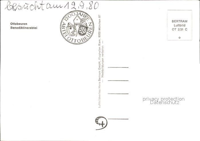 71984164 Ottobeuren Benediktinerabtei Fliegeraufnahme postalisch nicht gelaufen Erhaltung siehe scans KatCode: 11110009778186
