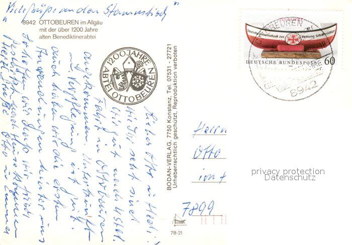 73008441 alte Postkarte Ottobeuren Benediktinerabtei Kircheninneres Putten postalisch gelaufen Erhaltung siehe scans [WerneD78] KatCode: 11110009778186