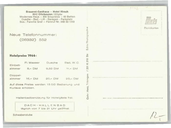 40642653 Ottobeuren Brauerei Gasthaus Hotel Hirsch Schwabenstube KatCode 11110009778186