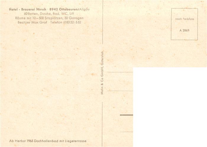 73896962 Ottobeuren Brauerei Hotel Hirsch postalisch nicht gelaufen Erhaltung siehe scans [FriedD77] KatCode: 11110009778186
