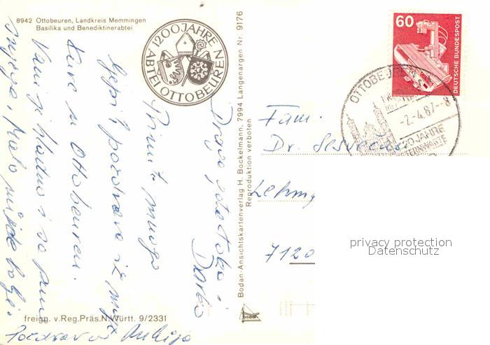 72841771 alte Postkarte Ottobeuren Fliegeraufnahme Basilika Benediktinerabtei postalisch gelaufen Erhaltung siehe scans [LiesaD40] KatCode: 11110009778186