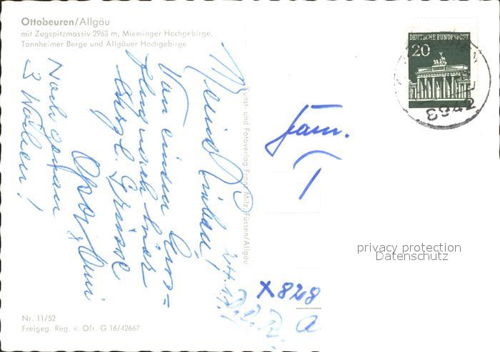 72113854 alte Postkarte Ottobeuren Fliegeraufnahme Kloster Allgaeuer Hochgebirge postalisch gelaufen Erhaltung siehe scans KatCode: 11110009778186