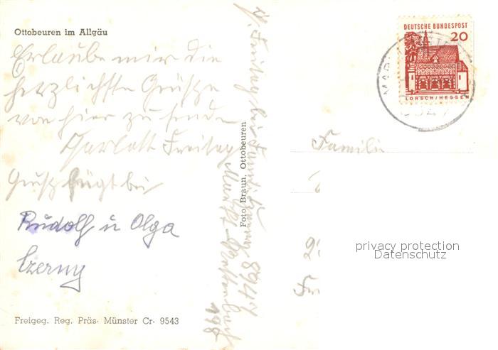 72947095 alte Postkarte Ottobeuren Fliegeraufnahme mit Kirche postalisch gelaufen Erhaltung siehe scans [LiesaD40] KatCode: 11110009778186