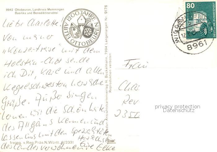 73204228 alte Postkarte Ottobeuren Fliegeraufnahmef Basilika Benediktinerabtei postalisch gelaufen Erhaltung siehe scans [NatalD47] KatCode: 11110009778186