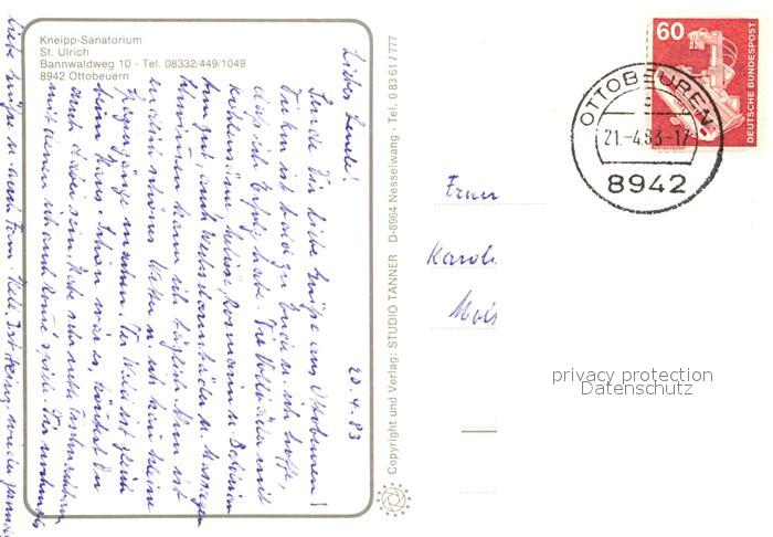 73066503 alte Postkarte Ottobeuren Kneipp Sanatorium St Ulrich postalisch gelaufen Erhaltung siehe scans [FriedD77] KatCode: 11110009778186
