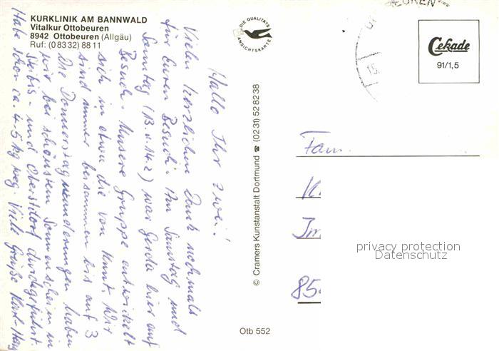 72707290 alte Postkarte Ottobeuren Kurklinik am Bannwald postalisch gelaufen Erhaltung siehe scans [WerneD78] KatCode: 11110009778186
