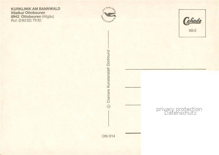 73646465 Ottobeuren Kurklinik am Bannwald postalisch nicht gelaufen Erhaltung siehe scans [FriedD77] KatCode: 11110009778186