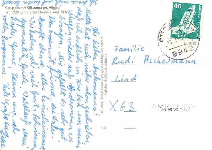 72628514 alte Postkarte Ottobeuren mit Basilika und Abtei postalisch gelaufen Erhaltung siehe scans [WerneD78] KatCode: 11110009778186