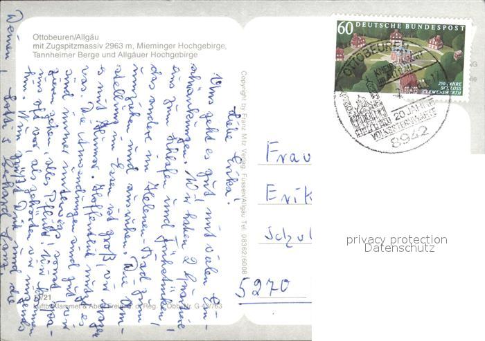 72465024 alte Postkarte Ottobeuren mit Mieminger Hochgebirge und Allgaeuer Alpen postalisch gelaufen Erhaltung siehe scans KatCode: 11110009778186