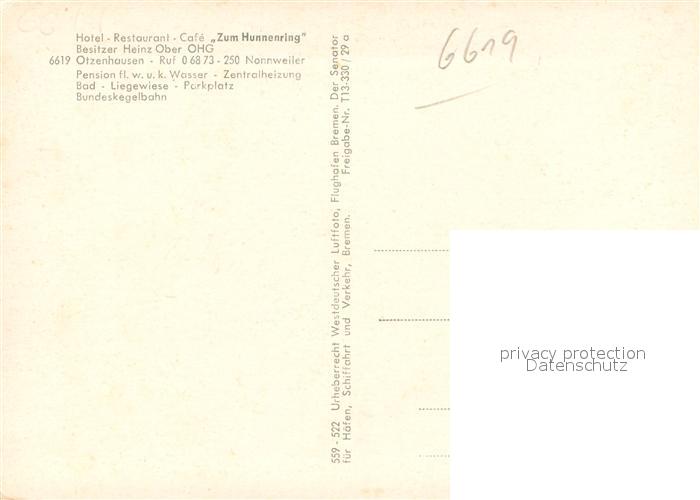 73711279 Otzenhausen Nonnweiler Hotel Restaurant Zum Hunnenring postalisch nicht gelaufen Fliegeraufnahme Erhaltung siehe scans [WerneD78] KatCode: 11110010046115