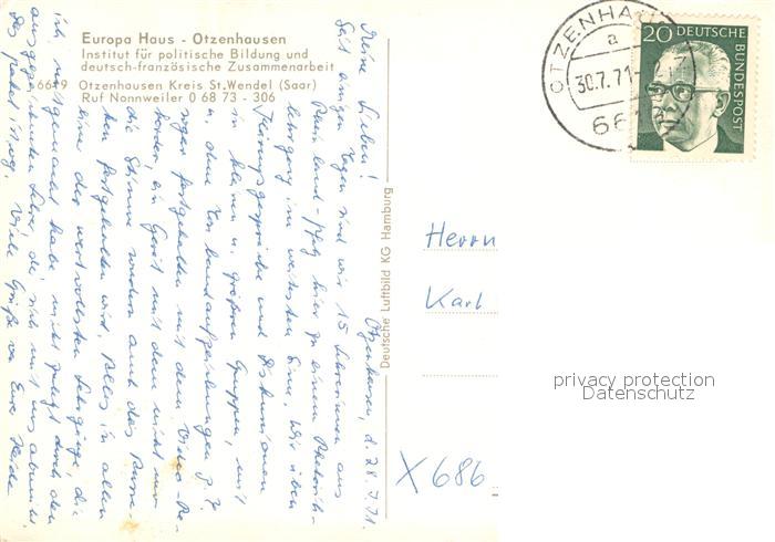 73655246 alte Postkarte Otzenhausen Saar Europa Haus Fliegeraufnahme postalisch gelaufen Erhaltung siehe scans [FriedD77] KatCode: 11110010046115