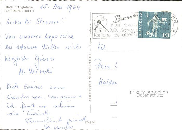 11644627 alte Postkarte Ouchy Hotel d Angleterre Port Lac Leman vue aerienne postalisch gelaufen Erhaltung siehe scans KatCode: 11470240795128