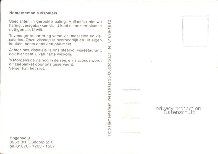 Ouddorp Hameetemans Vispaleis Tastraum Verkaufstheke postalisch nicht gelaufen Erhaltung siehe scans