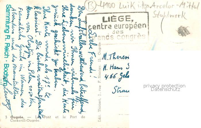 13703388 carte postale Ougree Le Pont et le Port de Cockerill postalisch gelaufen Erhaltung siehe scans [WerneD78] KatCode: 11070062008005