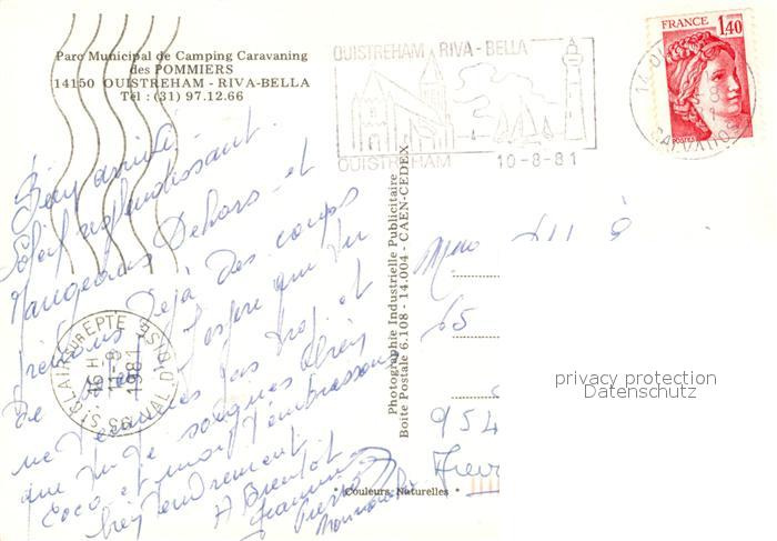 13582507 Ouistreham Riva Bella Parc Municipal de Camping Caravaning des Pommiers Vue aerienne postalisch gelaufen Erhaltung siehe scans [WerneD78] carte postale Wern Katcode 11170014214488