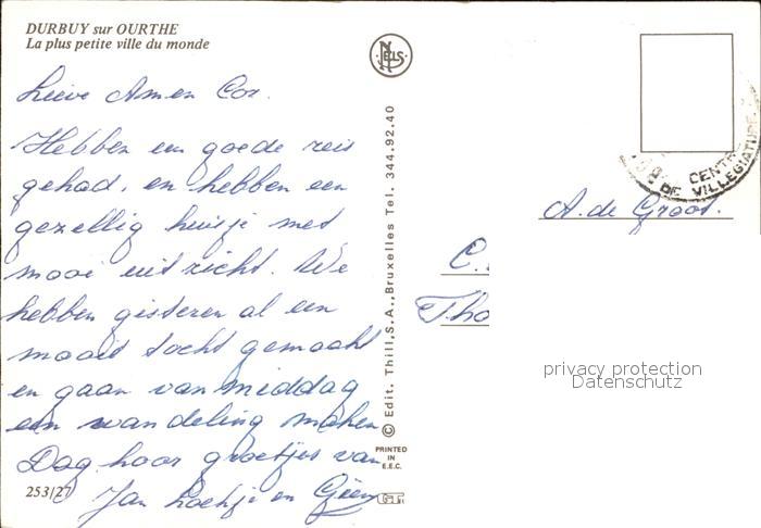 72450328 carte postale Ourthe Plus petite Ville du Monde postalisch gelaufen Erhaltung siehe scans KatCode: 11070081009262