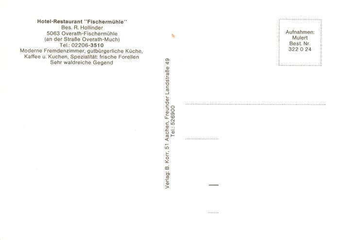 73877548 Overath Hotel Restaurant Fischermuehle Gastraeume Flusspartie postalisch nicht gelaufen Erhaltung siehe scans [WerneD78] KatCode: 11110005378024