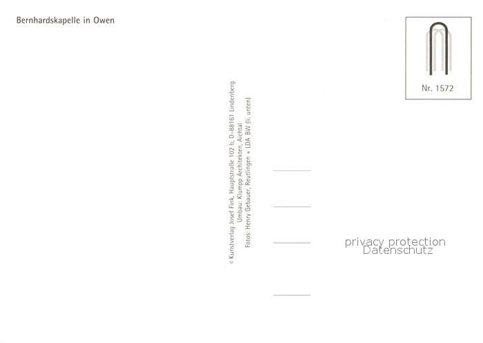 73236738 Owen Esslingen Bernhardskapelle postalisch nicht gelaufen Erhaltung siehe scans [KathaD81] KatCode: 11110008116054