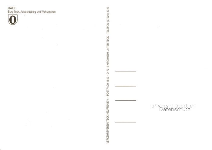 73182162 Owen Esslingen Burg Teck Aussichtsberg und Wahrzeichen postalisch nicht gelaufen Erhaltung siehe scans [WerneD78] KatCode: 11110008116054