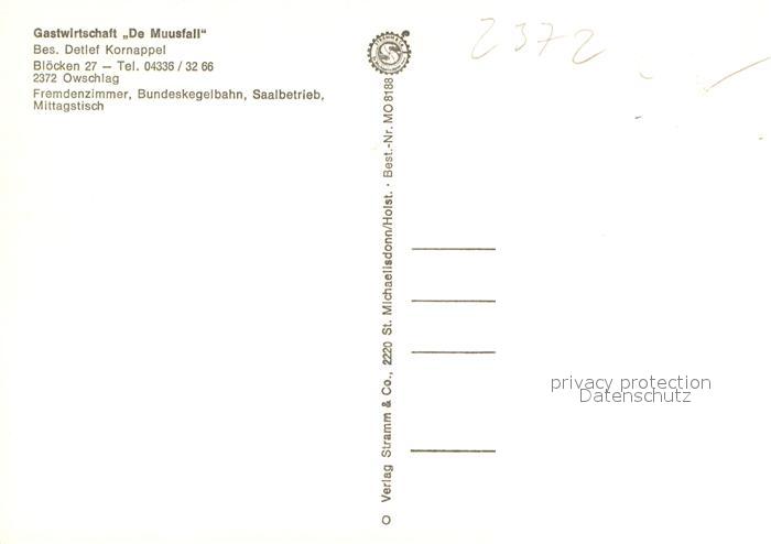 73642515 Owschlag De Muusfall Gastraeume Bar postalisch nicht gelaufen Erhaltung siehe scans [WerneD78] KatCode: 11110001058127