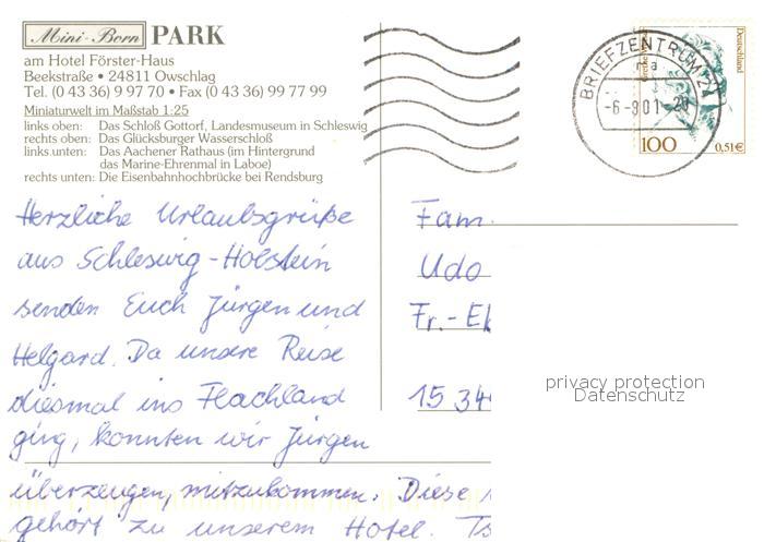 73724499 alte Postkarte Owschlag Mini Born Park Schloss Gottorf Gluecksburger Wasserschloss Aachener Rathaus Marine Ehrenmal Laboe Hochbruecke bei Rendsburg postalisch gelaufen Erhaltung siehe scans [WerneD78] KatCode: 11110001058127