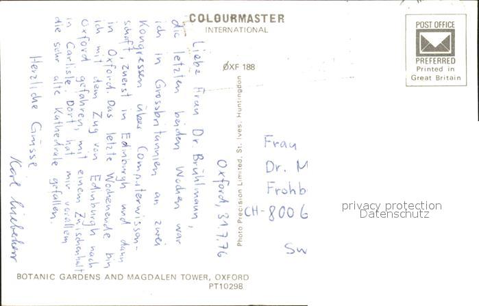 11777843 old postcard Oxford Oxfordshire Botanic Gardens and Magdalen Tower postalisch gelaufen Erhaltung siehe scans KatCode: 11570UKJ1J14UC