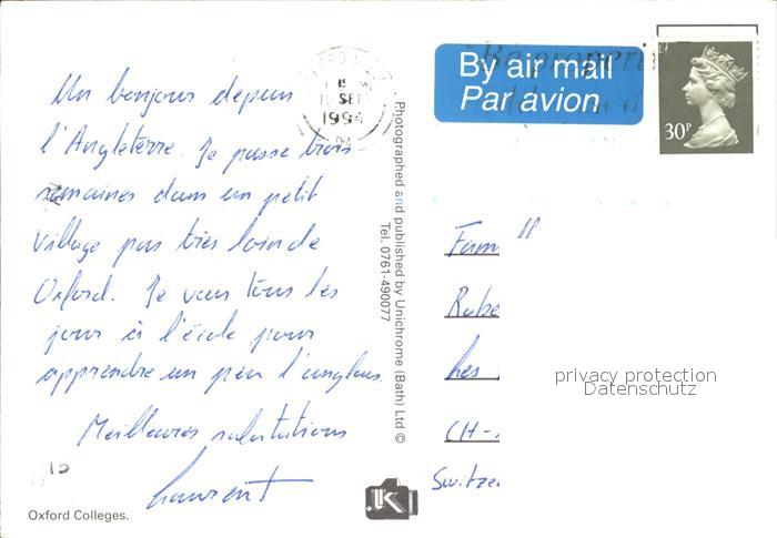 old postcard Oxford Oxfordshire Colleges postalisch gelaufen Erhaltung siehe scans