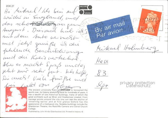 old postcard Oxford Oxfordshire Fliegeraufnahme postalisch gelaufen Erhaltung siehe scans