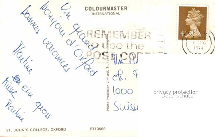 old postcard Oxford Oxfordshire St. Johns College postalisch gelaufen Erhaltung siehe scans [LiesaD40]