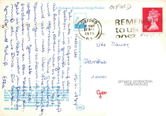 74109597 old postcard OXFORD Oxfordshire UK Fliegeraufnahme postalisch gelaufen Erhaltung siehe scans [WerneD78] KatCode: 11570UKJ1J14UC