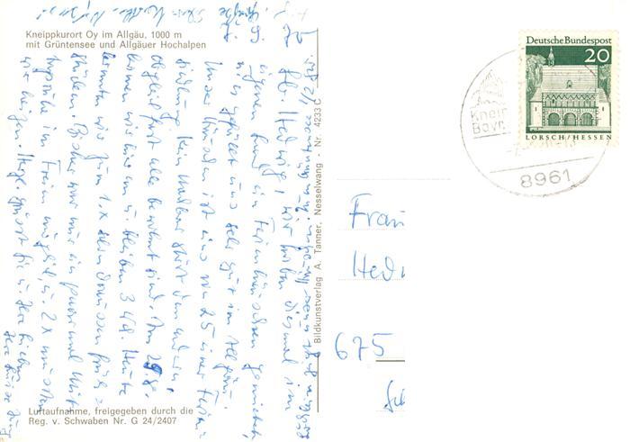 73886212 alte Postkarte Oy Bad Fliegeraufnahme mit Gruentensee und Allgaeuer Hochalpen postalisch gelaufen Erhaltung siehe scans [WerneD78] KatCode: 11110009780128