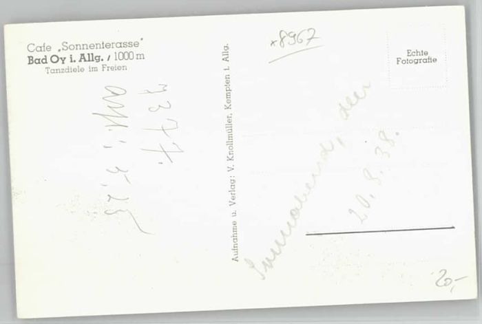 40246109 Oy Bad Mittelberg Oberallgaeu Bayern Cafe Sonnenterrasse * 1938 postalisch nicht gelaufen Alte Ansichtskarte Postkarte Katcode 11110009780128