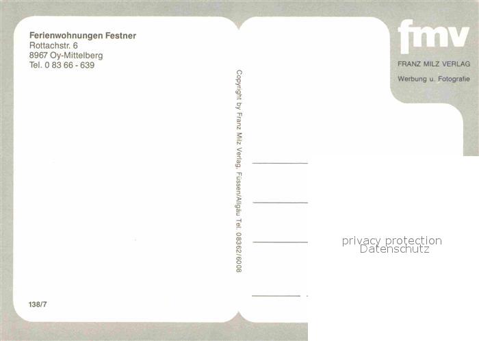 72832457 Oy Bad Mittelberg Oberallgaeu Bayern Ferienwohnungen Festner postalisch nicht gelaufen Erhaltung siehe scans [NatalD47] KatCode: 11110009780128