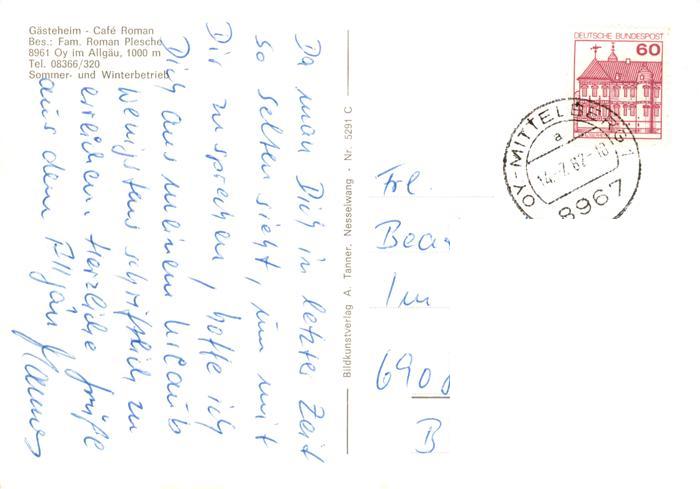 73912426 Oy Bad Mittelberg Oberallgaeu Bayern Gaesteheim Cafe Roman Moorweg Schwarzenberger Weiher Allgaeuer Alpvieh Daumenblick Dorfstrasse Gruentensee postalisch gelaufen Erhaltung siehe scans [FriedD77] alte Postkarte Frie Katcode 11110009780128
